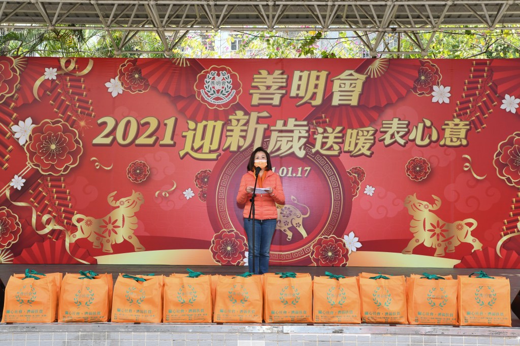 出席是次活動嘉賓包括中聯辦協調部副部長夏濤、副處長級助理張康、澳門社工局長者服務處職務主管鄭榆強、比亞迪股份有限公司高級區域經理葉成輝及善明會大會主席陳美儀、理事長陳建英、顧問歐陽四妹等一眾理監事。陳美儀主席在致詞時表示,善明會自2002年成立至今,每年都會於春節來臨前夕舉辦此項活動,向長者及有需要之人士和家庭贈送賀年禮品。