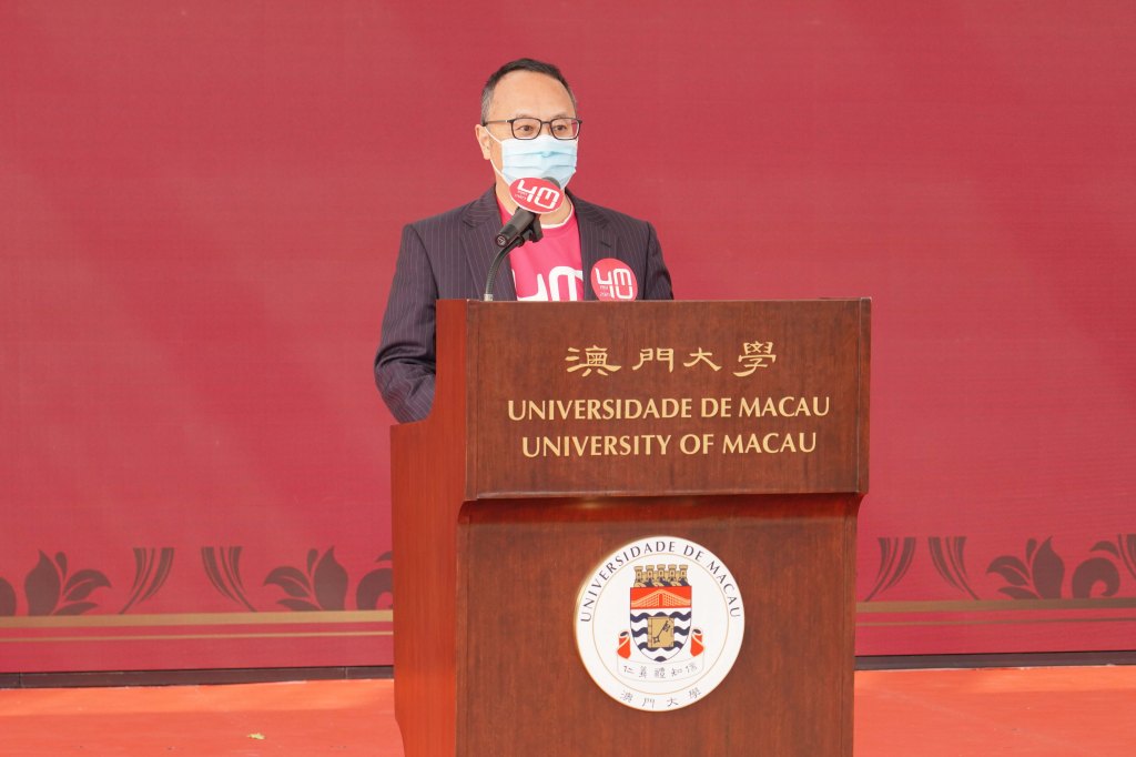 宋永華致辭時表示,2021年,澳大正步入「不惑」之年,也是國家「十四五」規劃的開局之年。在澳門融入國家發展大局帶來新的歷史機遇之下,澳大以開放自信的胸懷、創新進取的面貌,站在建校40周年的重要節點上,承前啟後,繼往開來,「不惑新航,揚帆追夢」。展望未來,澳大將進一步加強責任擔當,更好地配合特區政府在高等教育和科技創新領域的施政部署和方向,透過推動一流的人才培養、高水平的成果轉化、多元的社會服務等,切實助力澳門的產業多元化和可持續發展。