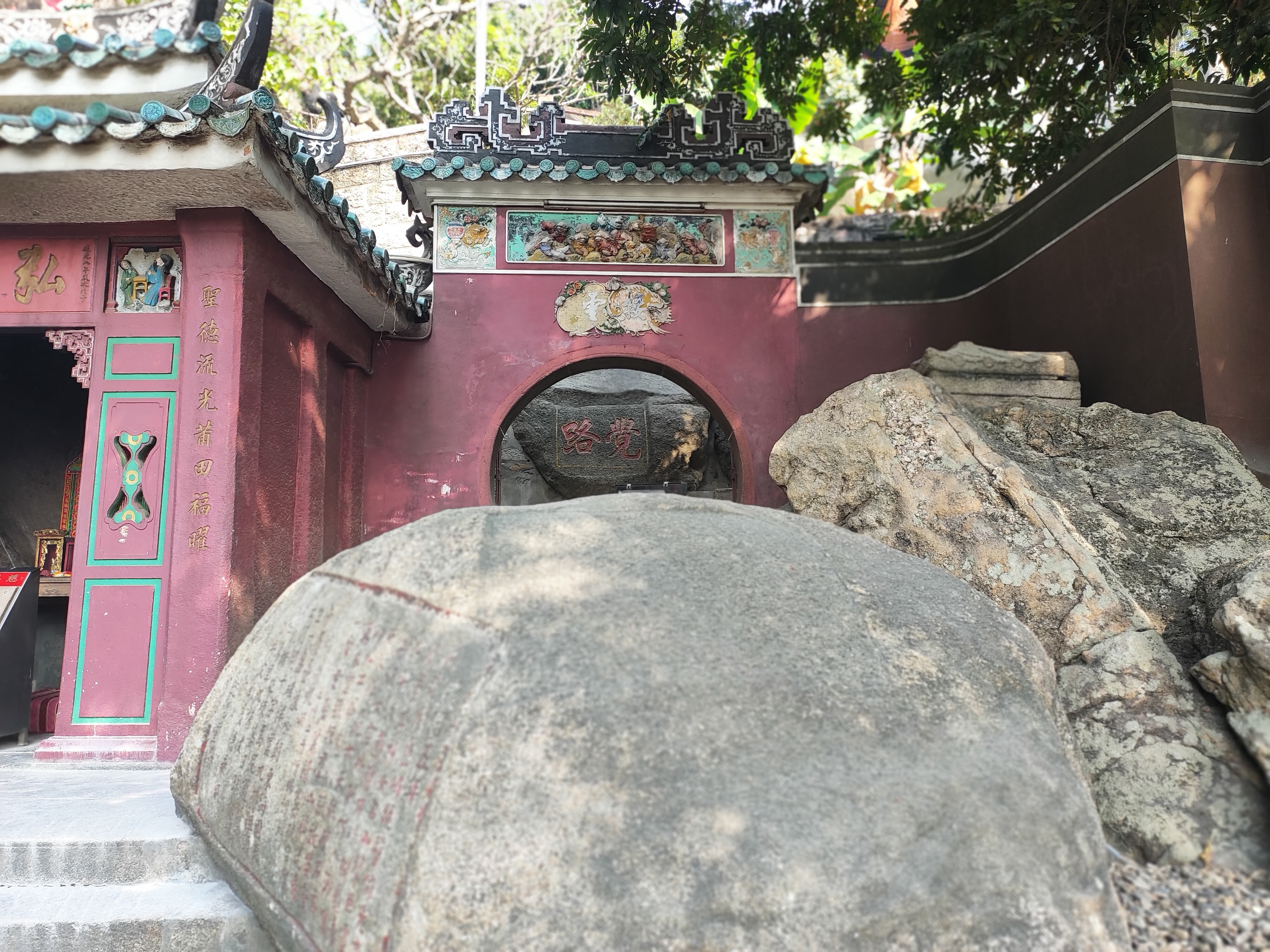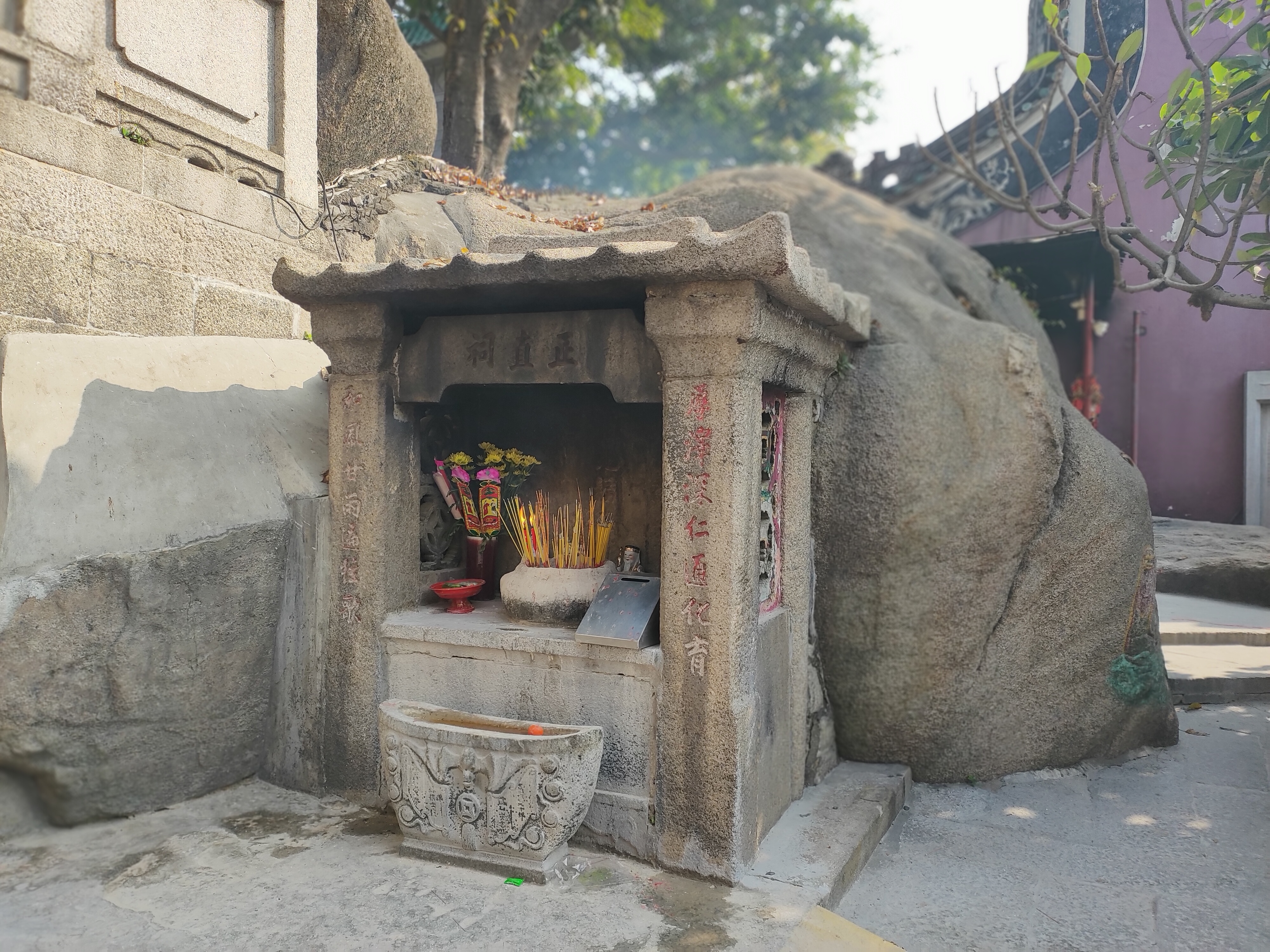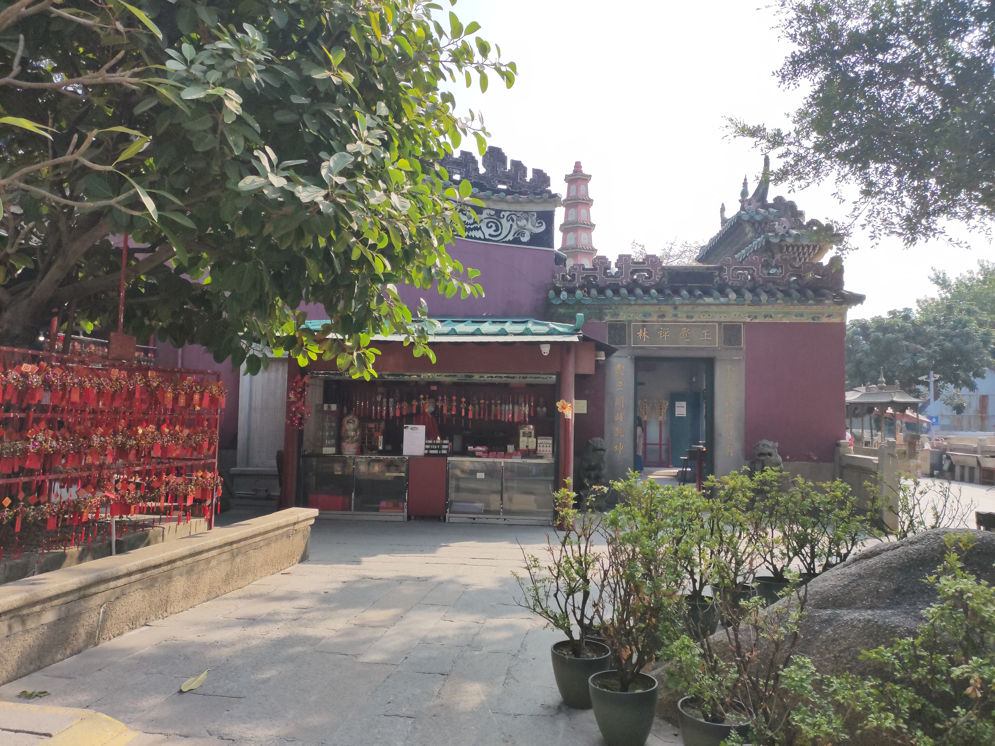 據《澳門紀略》記載,「相傳明萬曆時,閩賈巨舶被颶殆甚,俄見神女立於山側,一舟遂安,立廟祠天妃,名其地曰娘媽角。娘媽者,閩語天妃也。於廟前石上鐫舟形及『利涉大川』四字,以昭神異。」