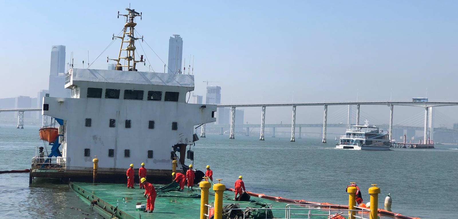 意外發生後,海事局一直與船東保持緊密溝通,並要求船東盡快開展打撈工作。在局方協調下,打撈船隊的潛水員於上周完成了船隻的水下勘探工作,評估了船隻的破損情況、船隻下陷的深度等,以便安排打撈方案和所需的船隊設備。期間局方船隻和人員一直在場戒備和清理滲出的油污。