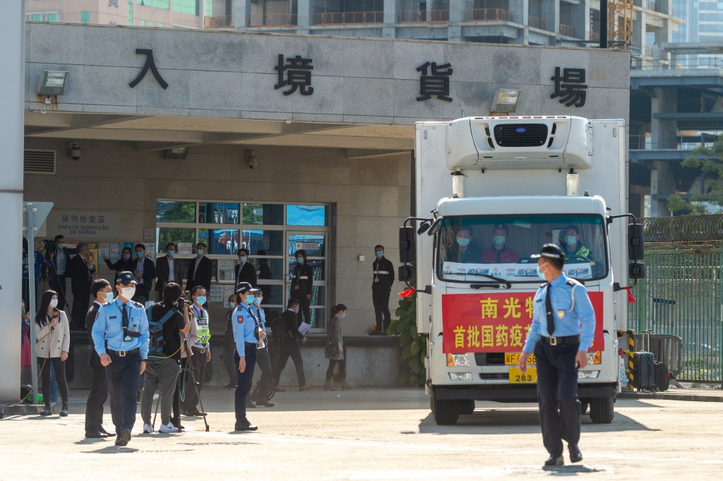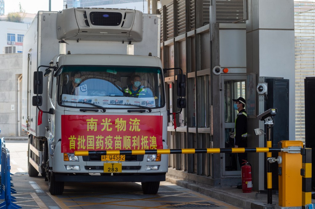 此批疫苗由北京以陸路經過30多小時運抵本澳,運輸過程得到了中聯辦、南光(集團)有限公司及相關部門的全力協助。在衛生局藥物事務廳稽查人員完成入口檢查手續後,南光集團傅建國董事長移交國藥集團新型冠狀病毒滅活疫苗,由衛生局李展潤局長簽署接收疫苗文件。出席儀式的還有中聯辦宣傳文化部萬速成部長、殷汝濤副部長;衛生局陳永華副局長、藥物事務廳蔡炳祥廳長、疾病預防控制中心林松主任等。