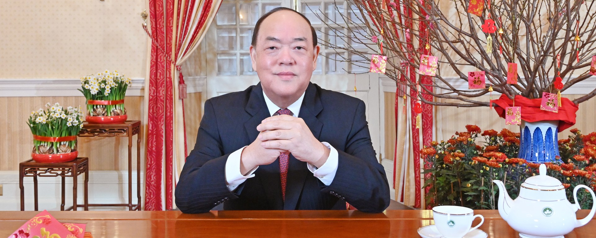 庚子鼠年送冬去,辛丑牛年迎春來。在這歡樂祥和美好的時刻,我謹代表特別行政區政府向全體澳門居民拜年!向所有關心支持澳門發展的朋友致以新春的祝福,恭祝大家新春愉快,闔家安康!