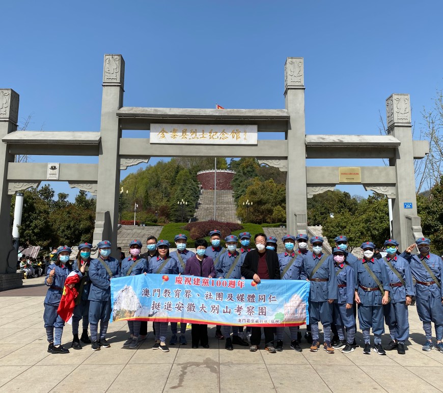 約廿位來自澳門教育、社團、傳媒界的代表於三月廿三日前往安徽,展開一連五日名為「挺進大別山」考察活動,沿著中國革命先烈的足跡,參觀紅色革命基地,了解當地紅色文化及綠色旅遊資源。代表團於三月廿四日參觀紅軍廣場、金寨縣革命歷史博物館,了解紅軍建軍歴史。下午代表團到劉鄧大軍挺進大別山前方指揮部舊地。