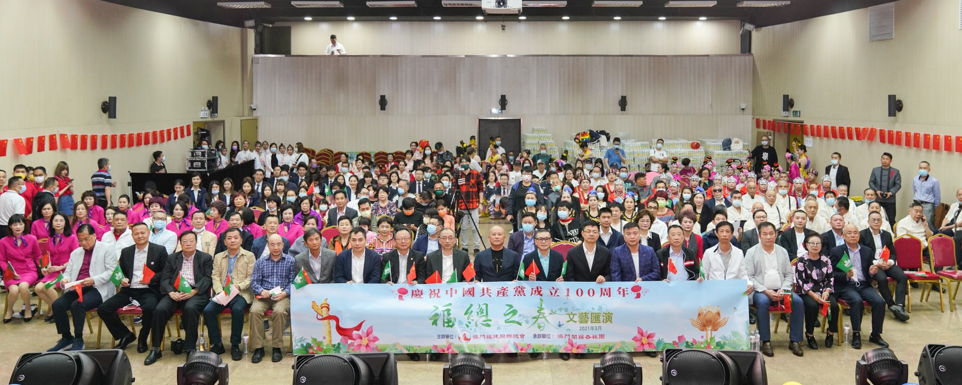 由澳門福建同鄉總會主辦,閩籍各社團、澳門國際銀行聯合承辦的「慶祝中國共產黨成立100周年•福總之春文藝匯演」活動,於3月21日下午在民众建澳聯盟大禮堂舉行。
