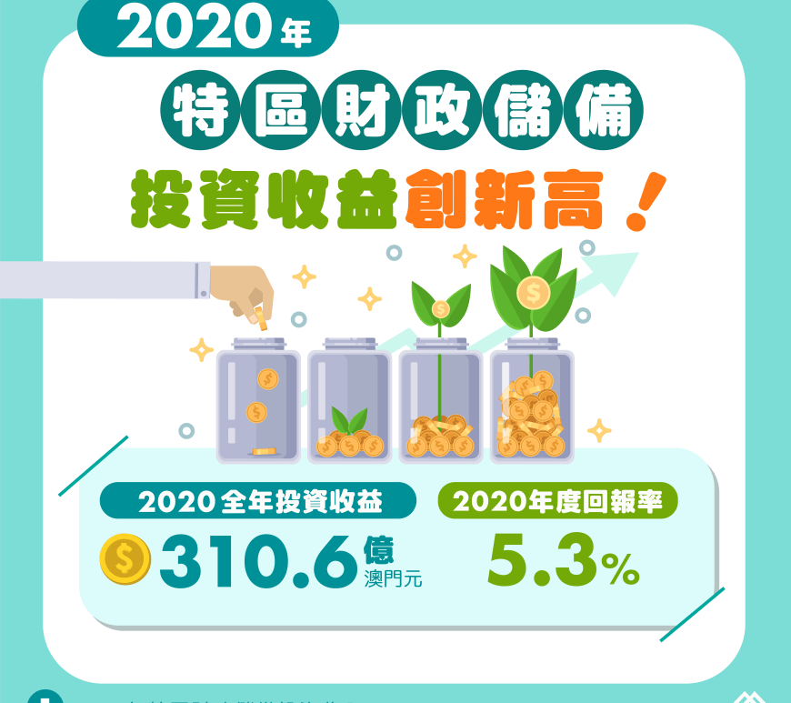 在2020年,澳門特區財政儲備錄得310.6億(澳門元,下同)投資收益,年度回報率為5.3%,以金額計為歷年最高。過去五年,財儲的平均年回報率為3.1%,相較同期的平均年度通貨膨脹率為2.0%。 年內,特區政府首次動用共466.0億的財政儲備填補預算赤字,並將2018年度的中央預算執行結餘當中的522.6億撥入財政儲備。截至2020年底,財政儲備的資本金額按年上升6.3% 至6,161.2億;其中,基本儲備及超額儲備分別為1,466.0億及4,695.2億。 環球金融市場劇烈波動 多管齊下實現保本增值 2020年,新型冠狀病毒肺炎疫情在全球蔓延,對各國經濟均造成極為嚴重的衝擊,環球金融市場劇烈波動,首季跌幅前所未見;全球最大的股票市場出現歷史性的多次「熔斷」。在此極端不利的情況下,財政儲備透過審慎配置及風險對沖,以及將資金投放在具增長潛力的市場,成功實現了保本與增值。 按資產類別分析,財政儲備在疫情爆發之初,迅速開展防守性部署,減持較高風險類別資產。其後,個別主要股票市場受極度寬鬆的貨幣政策影響,扭轉了上半年的跌勢,且財政儲備股權類資產有較高比重配置於高增長市場,推升全年股權投資收益。 債權證券方面,財政儲備有序提升債券組合的平均存續期,並增加人民幣債券的比重以鎖定較高的孳息率,年內亦引入了外判環球綜合債券組合,以更好地捕捉全球債券市場的投資機會。 貨幣市場存款方面,儘管近零的息率拖累整體利息收入,惟仍為財儲帶來較低風險的利息收益。同時,在扣除為管控匯率風險所衍生的對沖支出後,外匯重估亦錄得淨收益。 貫徹「安全、有效、穩健」原則管理財儲投資 展望2021年,風險資產價格已處於高位,新冠疫情陰霾未散,環球經濟復甦力度仍存在較多變數,加上貨幣市場處於低息甚或負利率的環境,均對儲備投資管理構成極大的挑戰。金管局將秉持「安全、有效、穩健」的基本原則,持續優化儲備管理制度,因應市況適時調整投資策略,並善用外聘國際投資顧問公司的專業研判,以取得儲備資源的最大效益及防範財政風險。 2020年12月底特區財政儲備資產分佈 組合 比率* 其中: 債券 貨幣市場 存款 外判股權類投資 直接投資 外判投資 美元資產 41.8% 14.3% 4.3% 17.5% 5.7% 港元資產 32.6% 6.6% 26.0% 人民幣資產 24.6% 7.4% 0.4% 16.8% 其他貨幣資產 1.0% 0.6% 0.4% 總數 100.0% 28.9% 4.3% 44.3% 22.5% … Continue reading 2020年特區財政儲備投資收益310.6億創新高