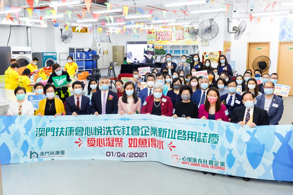 澳門扶康會於4月1日舉辦「澳門扶康會心悅洗衣社會企業新址啟用誌慶:愛心凝聚 如魚得水」活動。澳門扶康會理事會黃濠主席在致辭中,呼籲大眾關注殘疾人士就業,推動社會企業發展。是次活動的標語題詞「愛心凝聚如魚得水」,寓意著把社會各界的愛心凝聚在一起,共同齊心協力,為殘疾人士創造合適的工作環境,讓他們就像魚兒在水中一樣暢泳,能在適當地方發揮所長,天生我才必有用。期望未來特區政府能以積極手法解決社會問題,建立跨部門的合作,優化政策推動社會企業在本澳蓬勃發展,設置優先採購社會企業服務及產品的機制,為社會企業帶來更多機會,互相扶持及共同發展,共同組成小型生態圈,讓不同的弱勢社群可以透過社會企業共融成長,善用他們獨特的長處,以取長補短、發揮互補的精神為概念去運作。