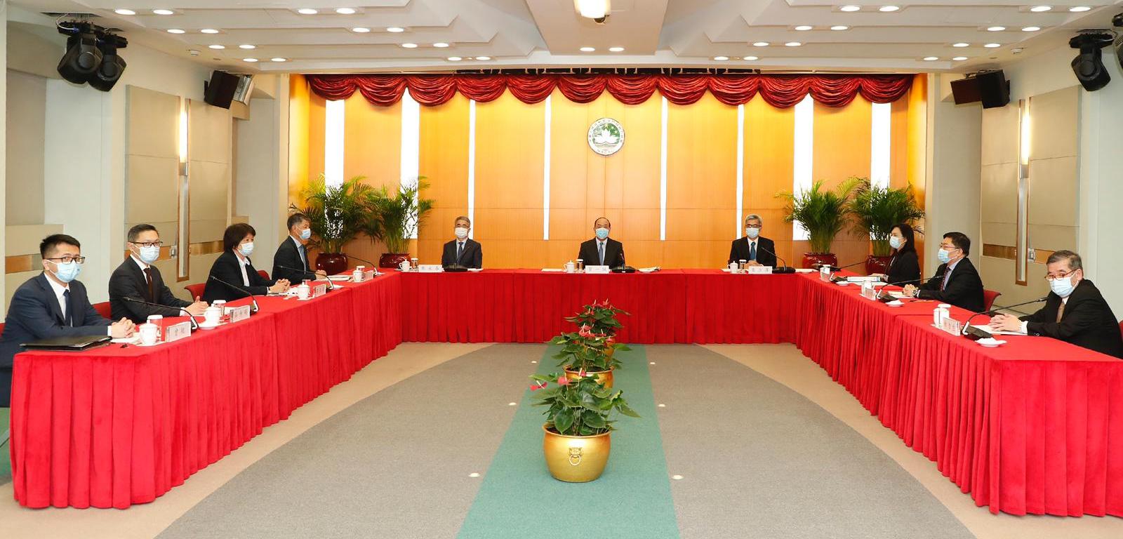 警察總局局長梁文昌、行政長官辦公室主任許麗芳、保安司司長辦公室主任張玉英、法務局局長劉德學、行政長官辦公室顧問林香生,以及保安司司長辦公室顧問曾翔等委員參與了會議。