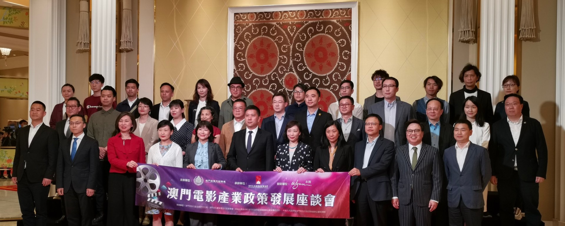 由澳門自強文創智庫主辦、澳門文化創意企業聯合會承辦的「澳門電影產業政策發展座談會」於四月十四日下午在永利皇宮宴會廳舉行,澳門社會文化司司長代表、澳門文化產業基金行政委員會主席林韻妮、文化局局長穆欣欣、中聯辦經濟部副部長張建華、中聯辦宣文部文體處副處長辛建波、中聯辦經濟部處長級助理劉暉、文化局文化創意產業促進廳廳長何鴻斌、中聯辦宣文部文體處助理王宇偉及中港澳三地業界代表出席並發表建議。主辦單位期盼通過這次的座談交流,能多方收集意見,提升澳門影視產業的大力有效發展,落實有效建議,打造澳門產業「平台」,使澳門向國際化影業產業進步。