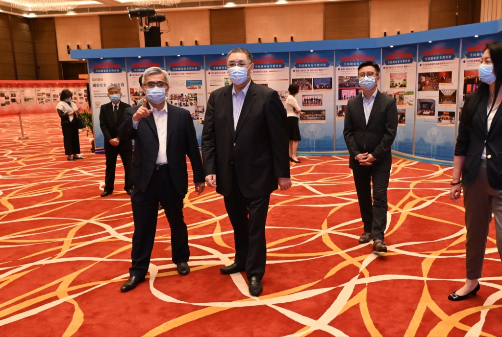 黃少澤司長向崔世安介紹了是次展覽場地的佈置和內容。崔世安對於國安展繼續承傳舉辦,不斷深化及豐富內容和表現手法、促進居民觀展熱情,表示充分肯定,同時亦有助於廣大居民更深入瞭解國家安全與日常生活息息相關,是維護國家與澳門特區繁榮穩定的根本。