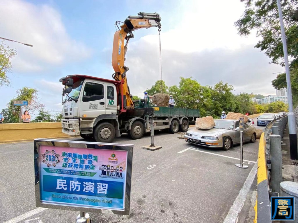 同時,演習亦設置了多項模擬突發事故情景,包括:颱風期間危險品貨運車交通事故、低窪地區居民拒絕撤離、狹窄街道拯救、船隻火警、西灣大橋下層隧道交通事故、緊急供水調度、搖搖欲墜之窗戶處理、移除倒塌的建築棚架、清除路障及疏通幹道等,從各項實際操作中檢視民防架構成員的應急預案及執行能力。