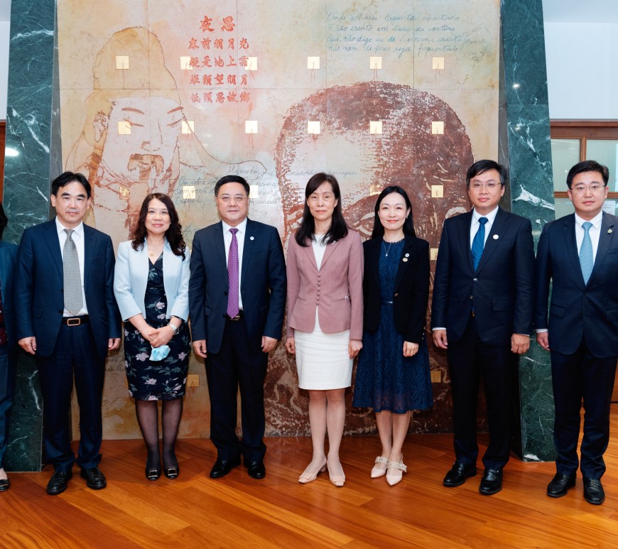 廣東外語外貿大學校長石佑啟一行在澳門理工學院院長嚴肇基陪同下,日前拜訪澳門特別行政區政府社會文化司司長歐陽瑜,雙方就加強粵港澳大灣區高校合作、推進「大灣區葡語教育聯盟」、「灣區校園計劃」等粵港澳大灣區合作項目的開展進行交流。