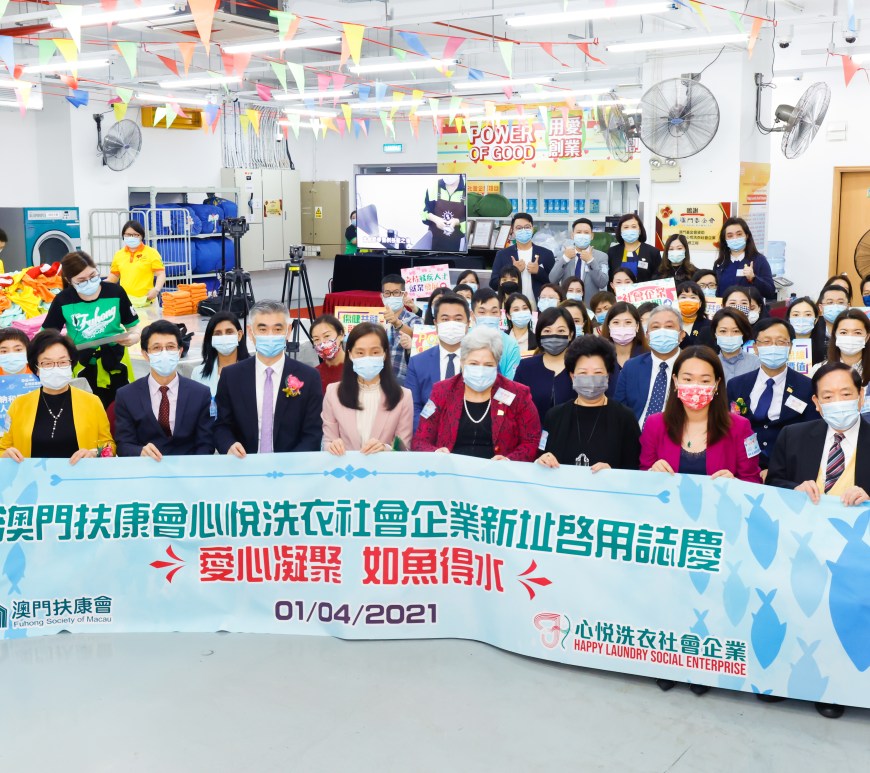 澳門扶康會於4月1日舉辦「澳門扶康會心悅洗衣社會企業新址啟用誌慶:愛心凝聚 如魚得水」活動。澳門扶康會理事會黃濠主席在致辭中,呼籲大眾關注殘疾人士就業,推動社會企業發展。是次活動的標語題詞「愛心凝聚如魚得水」,寓意著把社會各界的愛心凝聚在一起,共同齊心協力,為殘疾人士創造合適的工作環境,讓他們就像魚兒在水中一樣暢泳,能在適當地方發揮所長,天生我才必有用。期望未來特區政府能以積極手法解決社會問題,建立跨部門的合作,優化政策推動社會企業在本澳蓬勃發展,設置優先採購社會企業服務及產品的機制,為社會企業帶來更多機會,互相扶持及共同發展,共同組成小型生態圈,讓不同的弱勢社群可以透過社會企業共融成長,善用他們獨特的長處,以取長補短、發揮互補的精神為概念去運作。