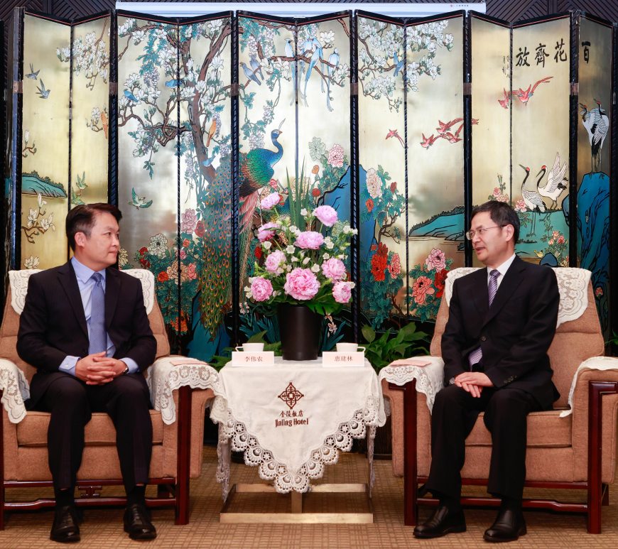 經濟財政司司長李偉農於5月13日在南京與江蘇省人民政府副省長惠建林會面,雙方就蘇澳多個範疇交換意見,冀未來加強不同領域的合作。惠建林副省長對澳門特區政府代表團到訪表示歡迎,江蘇省全力支持配合「江蘇澳門周」活動的舉行,並預祝圓滿成功。