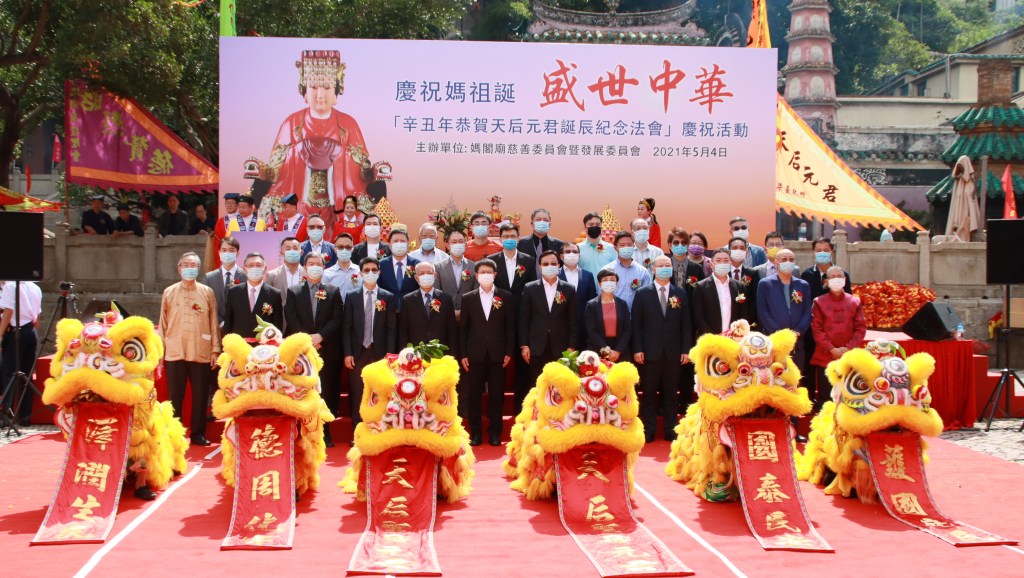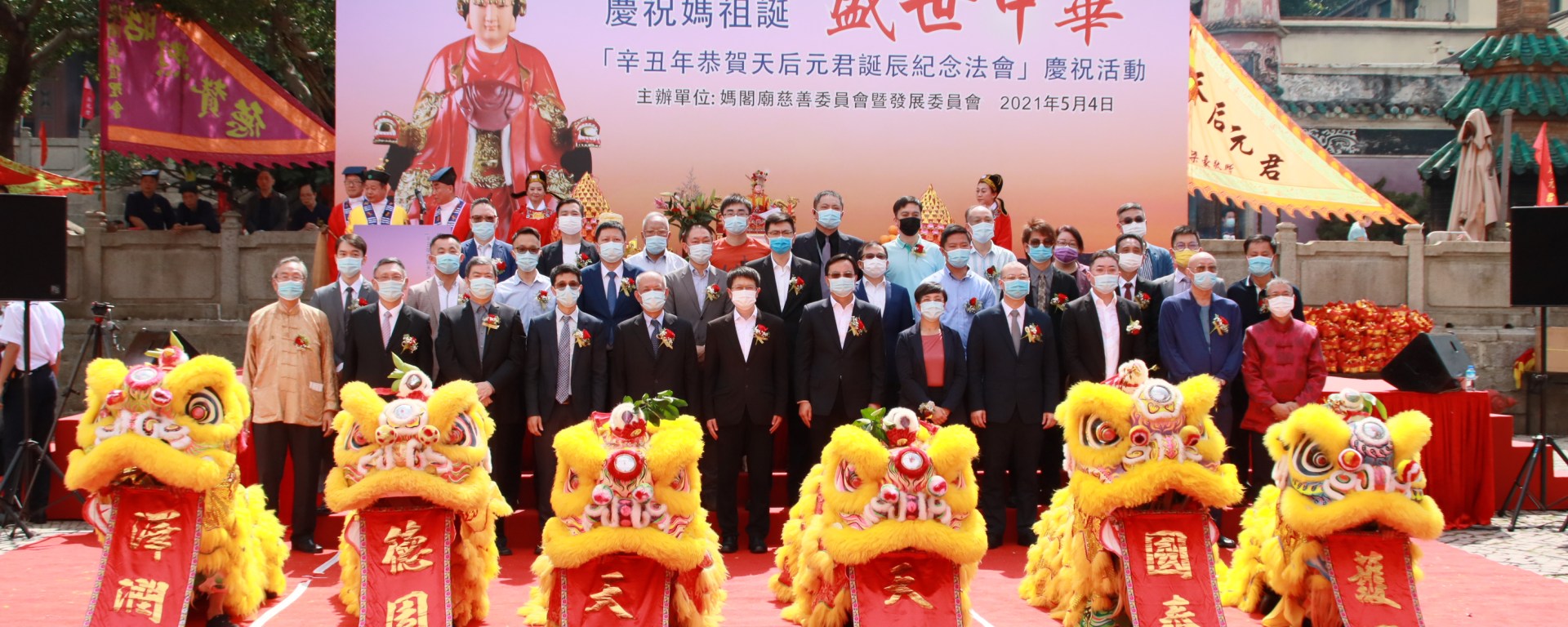 媽閣廟慈善委員會暨發展委員會日前舉辦「辛丑年恭賀天后元君誕辰紀念法會」活動,中聯辦經濟部副部長左祥華、中聯辦協調部副部長吳輝、行政會委員楊道匡、旅遊局局長文綺華、社工局韓衛局長、市政署代廳長歐振榮等嘉賓出席主禮。負責人希望通過活動,祈求媽祖庇祐澳門疫情受控,人人健康,安定祥和。