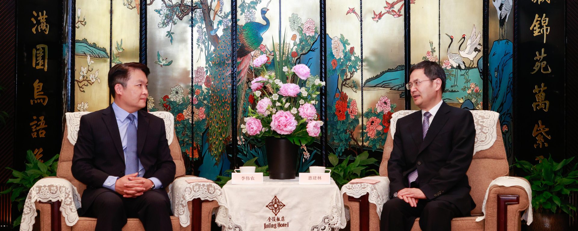 經濟財政司司長李偉農於5月13日在南京與江蘇省人民政府副省長惠建林會面,雙方就蘇澳多個範疇交換意見,冀未來加強不同領域的合作。惠建林副省長對澳門特區政府代表團到訪表示歡迎,江蘇省全力支持配合「江蘇澳門周」活動的舉行,並預祝圓滿成功。