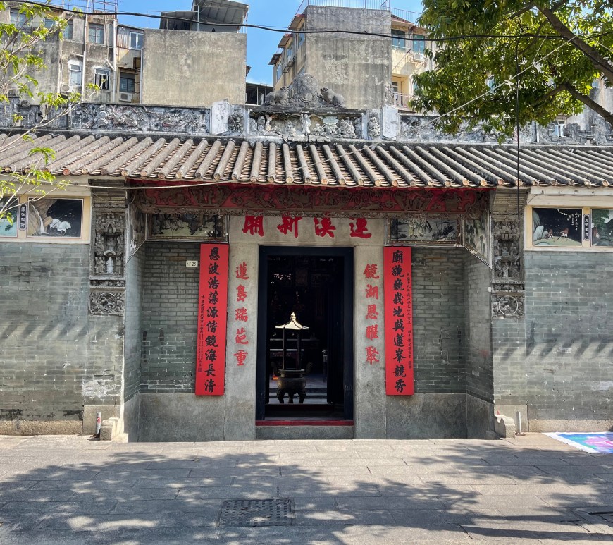 蓮溪廟位於新橋區,澳門半島形似蓮花,北端有蓮峰以沙洲與大陸相連。蓮峰之陽有溪水,流於新橋一帶,而廟就在蓮溪右岸,因而得名。始建於清嘉慶年間,道光九年九月十二日於風雨中倒塌,翌年重建。甲戍風災中再被吹毀,重建時加建觀音、金花兩殿,於光緒年間完成,後稱蓮溪新廟。廟內供奉財帛星君、華光、觀音、關公等各類神佛達十五種之多。廟宇有橫列五楹、縱列三進,共九座殿宇,規模僅次於蓮峰廟、媽閣廟、普濟禪院三大古廟。