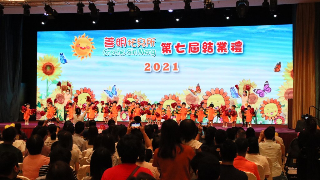 善明托兒所的畢業生透過精彩的歌舞表演,感謝托兒所教職員的教導和父母的照顧,帶給全場家長歡欣和喜悅。此外,今年善明托兒所以「小小藝術家–My First Book of Art」首次將在托幼兒的作品結集成2021年特刊。在老師的協助下,將幼兒的自由創作拓印展現出來。希望幼兒將來長大成人可再回顧當年成長中的點滴。接著,出席嘉賓分別為畢業的一百二十七位幼兒頒發畢業證書,祝福他們在今後的生活與學習中不斷成長,能堅強地面對未來的挑戰,創造美好的前程,善明托兒所第七屆結業典禮在快樂的笑聲中圓滿結束,場面溫馨歡樂。