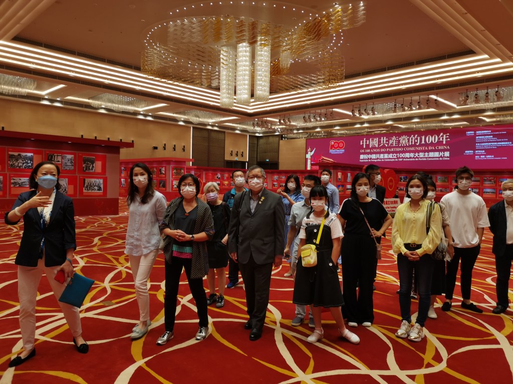 獲澳門基金會副主席鍾怡的帶領及詳細介紹下,該會成員參觀了由國務院新聞辦公室、澳門特別行政區政府、中央人民政府駐澳門特別行政區聯絡辦公室主辦,澳門基金會、南光(集團)有限公司承辦的「中國共產黨的100年——慶祝中國共產黨成立100周年大型主題圖片展」。鍾副主席表示,今次展出的二百九十八張珍貴圖片,分為四部分展現,讓大家回看中國共產黨百年奮鬥的光輝歷史,深入瞭解中國共產黨的百年奮鬥歷程;分別第一部分是「建立中國共產黨,奪取新民主主義革命偉大勝利」、第二部分是「成立中華人民共和國,進行社會主義革命和建設」、第三部分是「實行改革開放,開創和發展中國特色社會主義」及第四部分是「推進中國特色社會主義進入新時代,全面建成小康社會,開啟全面建設社會主義現代化國家新征程」。