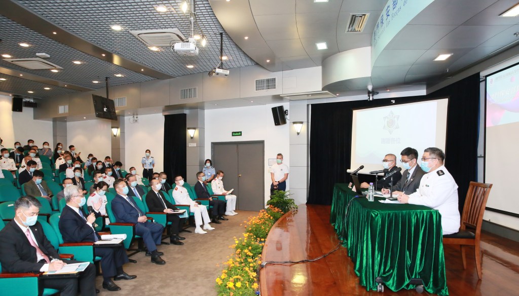 保安高校三十三周年校慶典禮除由保安司黃少澤司長擔任主禮嘉賓外,還邀請到中央駐澳聯絡辦公室警務聯絡部宋東翔副部長、警察總局梁文昌局長、澳門海關黃文忠關長、中國人民解放軍駐澳門部隊金緯副參謀長、澳門保安部隊及保安部門紀律監察委員會歐安利主席、以及保安司轄下部門、大專院校和政府部門等嘉賓代表出席。此外,為配合防疫措施,同時擴大研討會的覆蓋面,是次研討會亦以線上直播形式與各澳門保安部隊和保安部門人員分享。