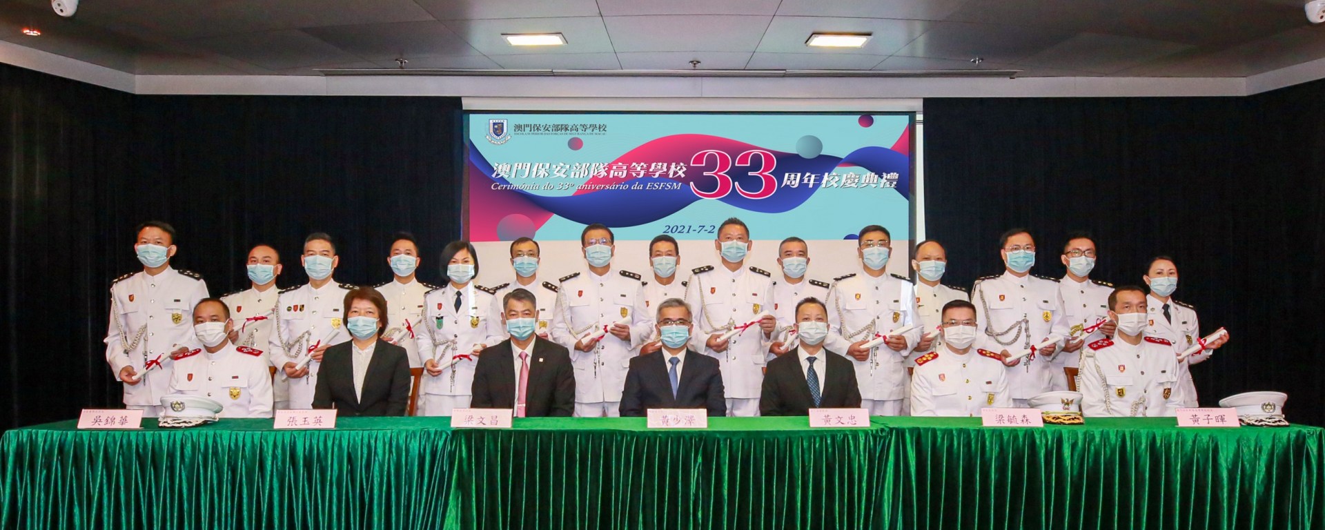 澳門保安部隊高等學校迎來建校三十三周年,於7月2日開展校慶系列活動,當中包括早上8時正在校內舉行升國旗及區旗儀式,以及10時正在高校禮堂舉行校慶慶祝典禮,典禮由保安司黃少澤司長主持,典禮中向第七屆指揮及領導課程學員頒發結業證書,隨後舉行「民防安全與抗災救援」研討會。