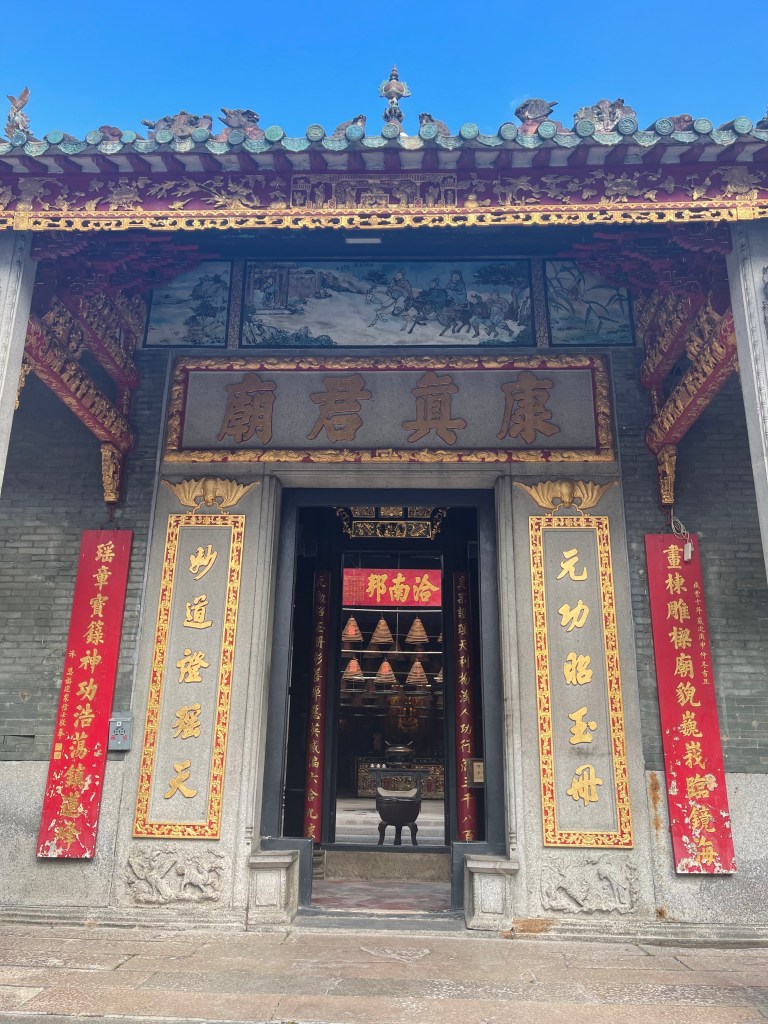 康公廟通過庭院將廟的各殿相聯一起,具中國南方建築的特點。在廟頂部分,有用多色赤陶製成的薄浮雕檐壁。