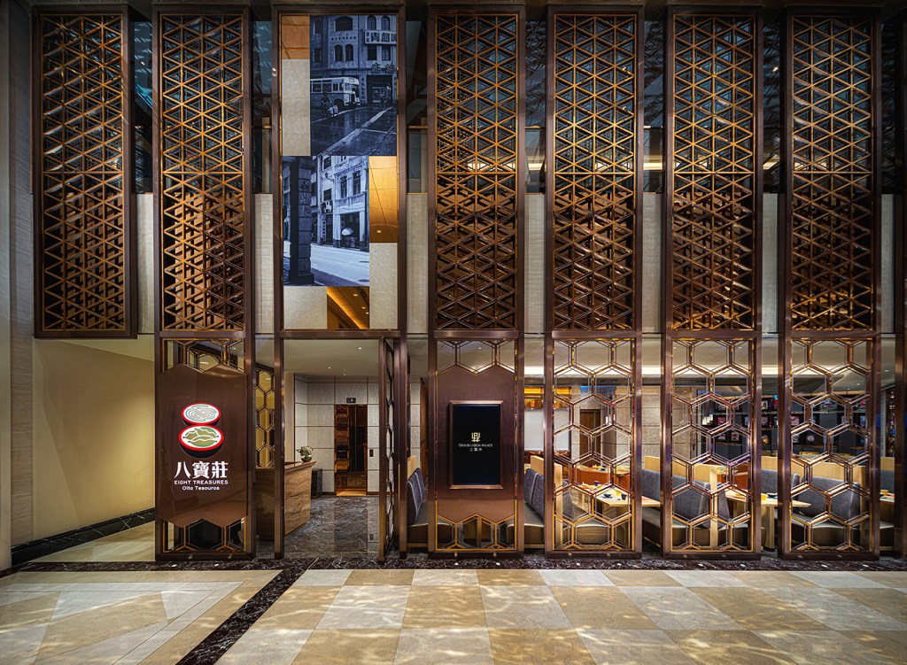 「茶樓」由香港著名設計師陳幼堅設計,以懷舊風格向廣東經典「飲茶」文化致敬。此餐廳將重現傳統的點心車服務,一籠籠精緻及熱騰騰的鹹甜美點穿梭桌間,任君選擇,活現茶樓特色。除了多款懷舊及創意點心,「茶樓」亦提供正宗粵菜。餐廳的拱形天花由數以萬計的中式茶杯鋪砌,雅致吊燈則是以數百雙水晶筷子拼砌而成,體現出陳幼堅將藝術和美食文化徹底交融的設計巧思。
