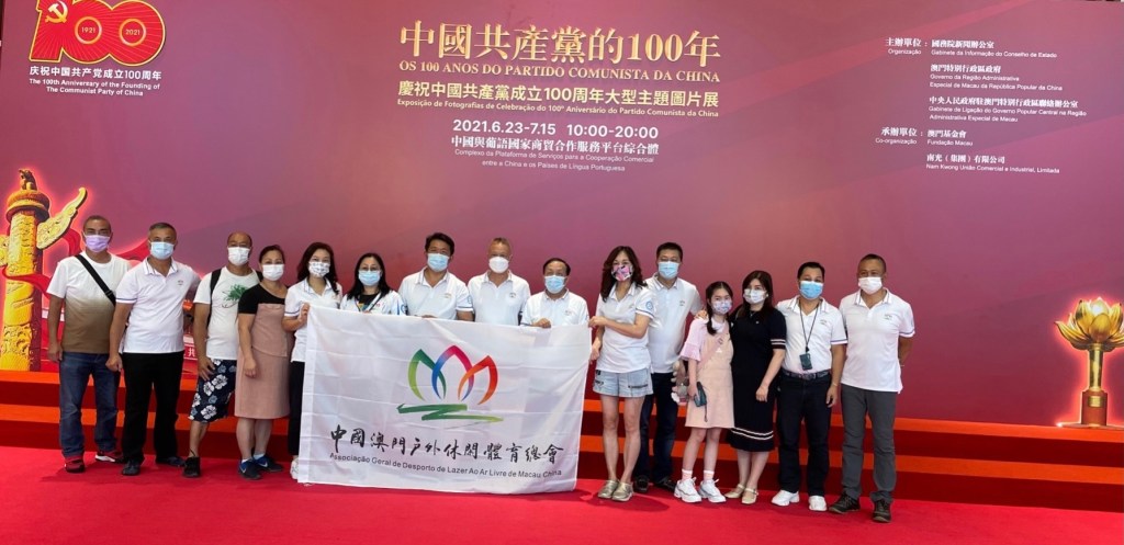 中國澳門戶外休閒體育總會理事長李志宏、秘書長陳景培、監事長陳鋒、副會長余衛權、副理事長陳永文、黃志忠、仲裁副主席許仲泉、秘書孫建平等於七月十一日率領一眾理事及家屬,參觀由國務院新聞辦公室、澳門特區政府、中央人民政府駐澳門特別行政區聯絡辦公室主辦,澳門基金會、南光(集團)有限公司承辦的「中國共產黨的一百年–慶祝中國共產黨成立一百周年大型主題圖片展」。