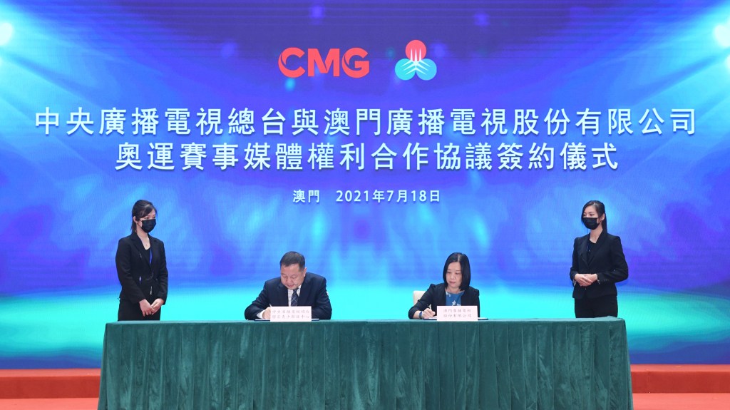 總台體育青少節目中心和澳門廣播電視股份有限公司代表雙方簽署《奧運賽事媒體權利合作協定》。根據協定,中央廣播電視總台免費將自身持有的2020年東京奧運會賽事節目、2022年北京冬奧會賽事節目在澳門特別行政區的電視版權以非獨家形式許可澳門廣播電視股份有限公司播出。