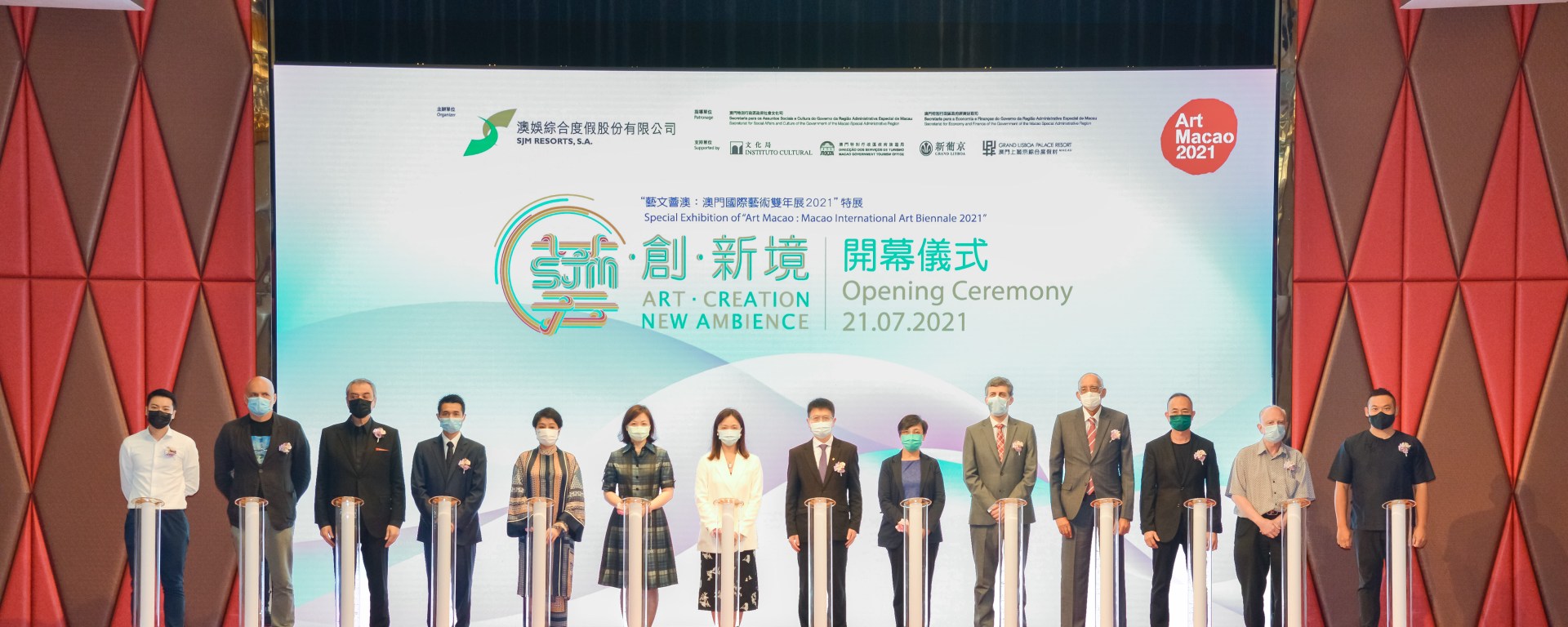 澳娛綜合度假股份有限公司與澳門本地八位優秀藝術家合作舉辦名為「藝・創・新境」系列展覽,以響應「藝文薈澳:澳門國際藝術雙年展2021」。由澳娛綜合呈獻的「藝・創・新境」系列展覽為期四個月,開幕式日前假澳門新葡京酒店舉行,澳門特別行政區政府社會文化司司長辦公室顧問羅灝芝女士、中央人民政府駐澳門特別行政區聯絡辦公室經濟部副部長左祥華先生、葡萄牙駐澳門及香港總領事館教育及文化副領事夏祖堯先生、澳門特別行政區政府文化局局長穆欣欣女士、澳門特別行政區政府旅遊局局長文綺華女士、澳娛綜合常務董事梁安琪女士、董事何猷亨先生、秘書長官樂怡大律師,以及六位參展藝術家馬若龍先生、吳衞鳴先生、君士坦丁先生、馬維斯先生、霍凱盛先生及蔡國傑先生共同主禮。