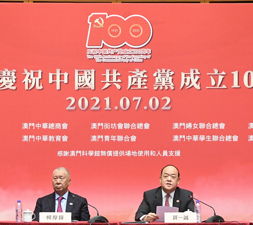 行政長官賀一誠於7月2日在澳門社會各界慶祝中國共產黨成立100周年座談會上表示,將全面準確貫徹習近平總書記重要講話精神,以推進「一國兩制」成功實踐為使命,積極推動特區各項建設事業發展,更好融入國家發展大局,在新的歷史征程中,為實現中華民族偉大復興的中國夢作出新的更大貢獻。