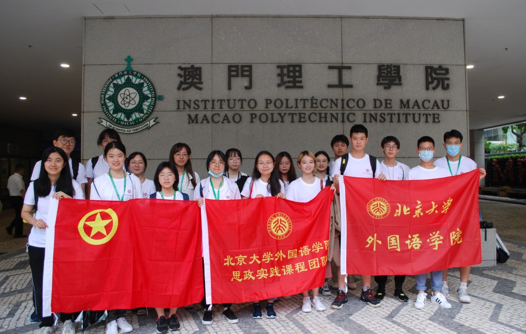 為加強澳門與北京高等教育交流與合作,7月18至23日,北京大學外國語學院澳門實踐團一行參加澳門理工學院「一國兩制」研習夏令營,開展「走中西融合之路,探一國兩制之史」的思政實踐課程,以探究「一國兩制」的成功實踐,瞭解中西文化的交流融合,見證中華民族的偉大復興。研習夏令營期間,北京大學學生和老師們走進社區,探索「一國兩制」在澳門的具體落實,感受愛國愛澳的核心價值,見證回歸之後的繁榮發展,理解澳門中西交融、和諧穩定的治理智慧,是將專業教育與思政教育相結合,實現全員、全過程、全方位育人的有效嘗試。