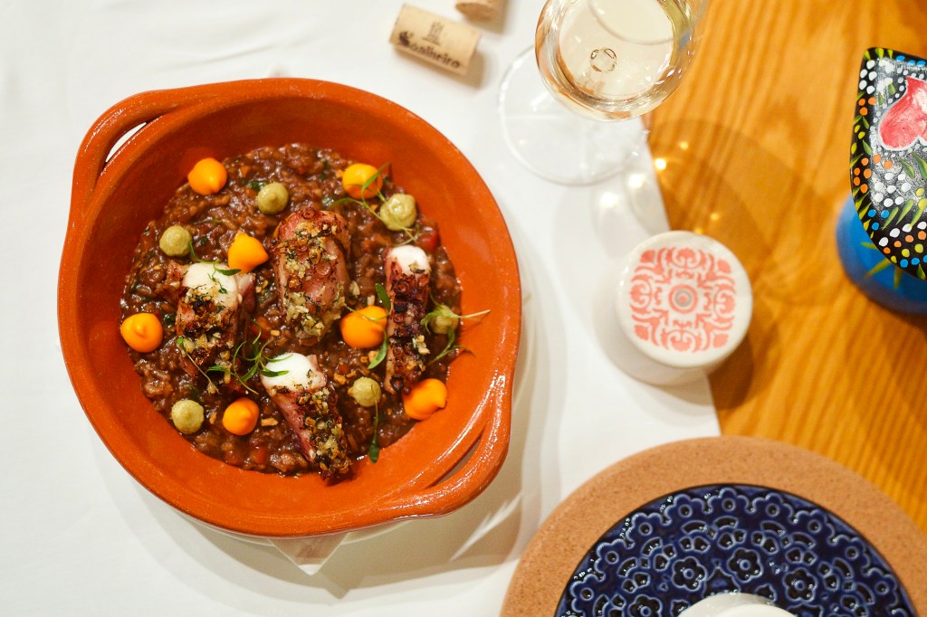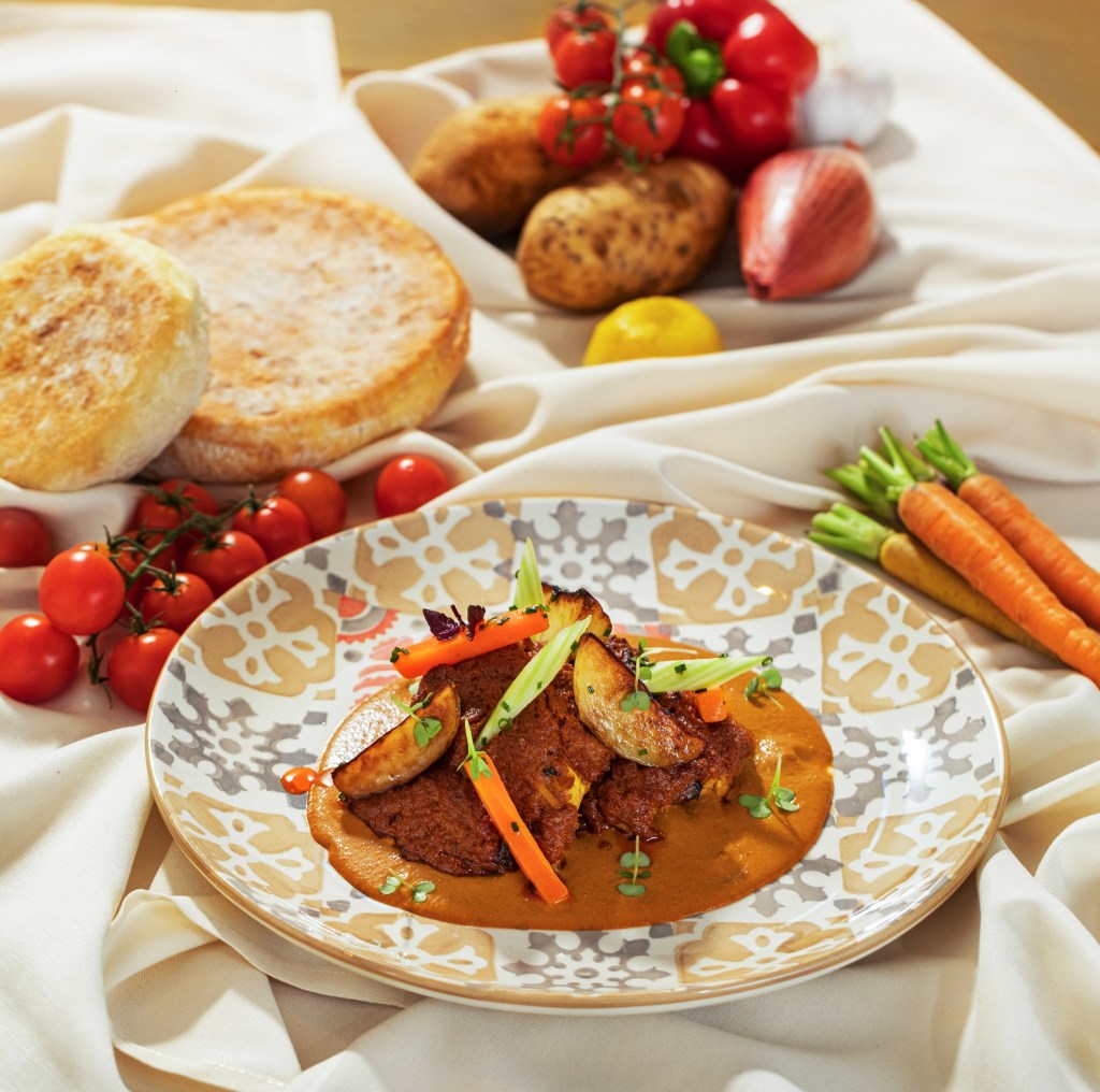 是次澳葡韻味的主打菜式包括有經典「白酒煮蜆」,以及配上主廚特製之甜椒醬和青橄欖醬的葡式「八爪魚飯 」,令鮮味昇華;另一道「葡式蟹肉沙律」靈感來自於廣東名菜釀焗鮮蟹蓋,配上咖喱及脆芝士,將澳葡味道發揮得淋漓盡致。享用盛事全日套餐的賓客,可以優惠價澳門幣20*元起升級品嚐指定土生葡菜菜式,細味中西文化交融的美妙。套餐中的甜品選項「朱古力慕斯配酒浸梨」以葡萄牙紅砵酒浸煮鮮梨,並加入肉桂及香草等提味,極具葡萄牙風味。盛事的單點菜單亦不乏經典土生葡菜蹤影,必不可少的代表有「非洲雞」,充分呈現擁有逾450年歷史背景的澳葡菜精髓,加入辣椒、椰子、花生、香茅等食材的靈魂醬料,味覺層次豐富。