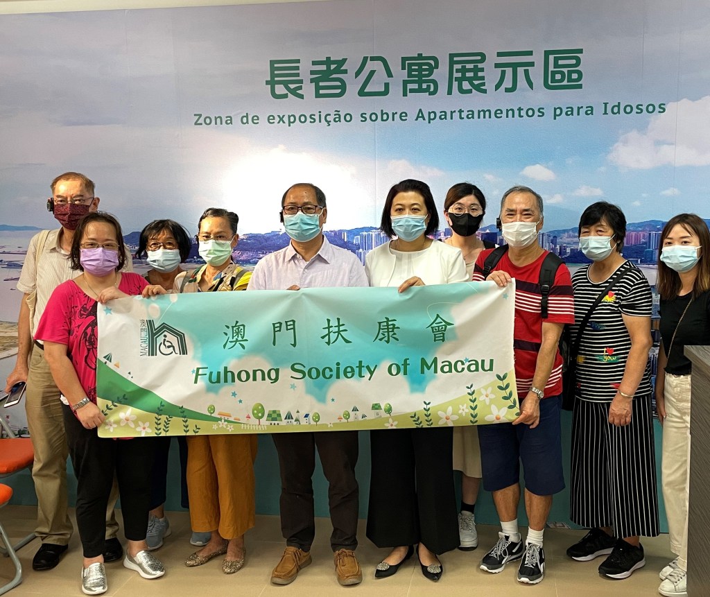 澳門扶康會理事會黃濠主席、周惠儀總幹事與家屬資源服務的家屬一行10人前往位於望廈社會房屋第二期望德樓三樓的新城A區經濟房屋、暫住房及長者公寓展示區進行參觀。非常感謝特區政府設置展示區,讓家屬能透過展示區的示範單位、展板、展區、短片等方式,增加對經濟房屋、暫住房及長者公寓大樓及周邊配套等方面的了解,長者公寓採開放式單位,引入智能養老系統,包括:設置熱能感應、水浸提示、平安鐘及無線網絡等,並設有公共飯堂、醫療設施、社服設施及綠化平台等配套設備。