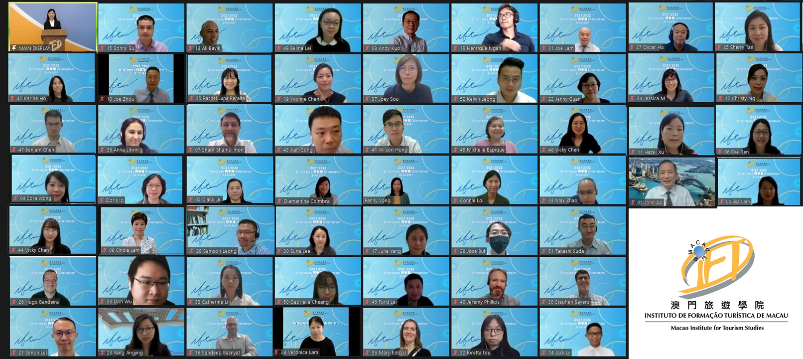 為降低疫情傳播的風險,澳門旅遊學院於8月20日以線上形式舉行2021/2022學年開學禮,開學禮上並播放升國旗儀式短片。
