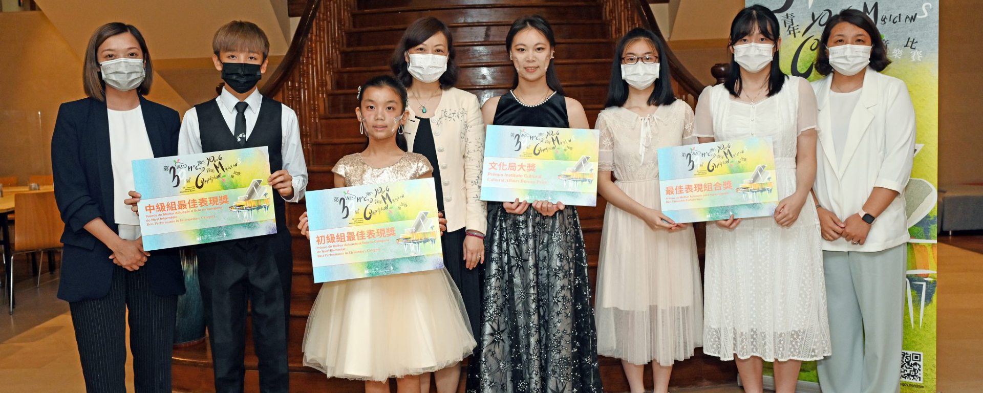文化局「第三十九屆澳門青年音樂比賽」日前頒獎,向四項特別大奬得主頒發獎項,本屆《文化局大奬》由蔡朗珵獲得。文化局局長穆欣欣、演藝發展廳廳長余慧敏及演藝活動處處長曹偉妍出席進行頒獎,比賽圓滿結束。