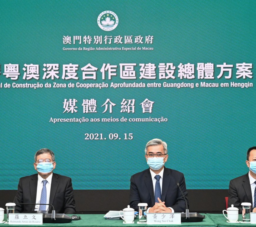 《橫琴粵澳深度合作區建設總體方案》剛於近日公佈,中央政府、廣東省政府和特區政府高度重視,早前已經舉辦了多場講解會。為了使澳門社會各界和廣大市民進一步清晰了解有關方案的內容,按照行政長官的指示,保安司黃少澤司長於15日聯同運輸工務司羅立文司長舉行第三場媒體介紹會,介紹總體方案中有關通關便利及相關工程方面的情況。