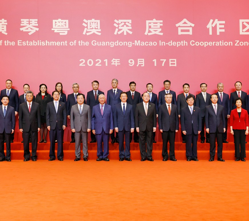 橫琴粵澳深度合作區管理機構揭牌儀式於9月17日上午在橫琴舉行。揭牌儀式前,中央政治局常委、國務院副總理韓正接見了行政長官賀一誠,並與橫琴粵澳深度合作區管理團隊主要成員合影。