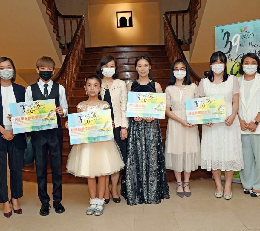 文化局「第三十九屆澳門青年音樂比賽」日前頒獎,向四項特別大奬得主頒發獎項,本屆《文化局大奬》由蔡朗珵獲得。文化局局長穆欣欣、演藝發展廳廳長余慧敏及演藝活動處處長曹偉妍出席進行頒獎,比賽圓滿結束。