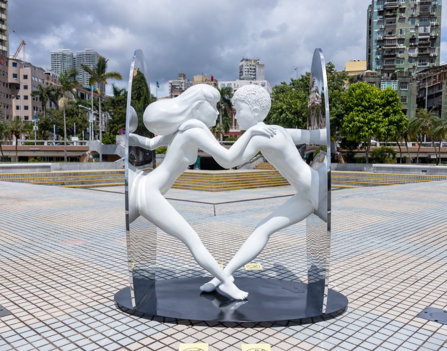 「藝文薈澳:澳門國際藝術雙年展2021」推出共30項大型展覽,其中公共藝術展以「幸福技術」為主題,作為主場展「全球化的進與退」公共空間的延展,表現藝術家們對創造幸福的思考。由泰國藝術家貢坎創作的公共藝術作品《想念你》現已亮相南灣.雅文湖畔,為公眾呈現美好的幸福風景。