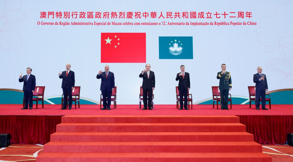 特區政府10月1日舉行慶祝中華人民共和國成立72周年酒會。行政長官賀一誠致辭時表示,澳門特區一定牢記使命,把握機遇,不負中央厚望,不負社會期待,緊緊圍繞「一條主線」、「四個戰略定位」、「四項主要任務」,循序漸進落實橫琴粵澳深度合作區各項開放改革政策措施,與廣東省一道,切實做好合作開發橫琴這篇文章。