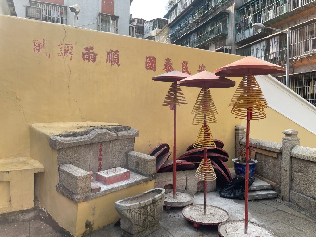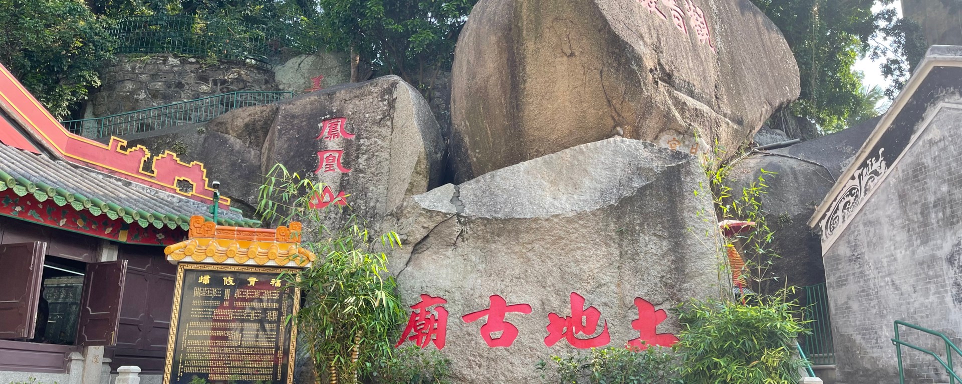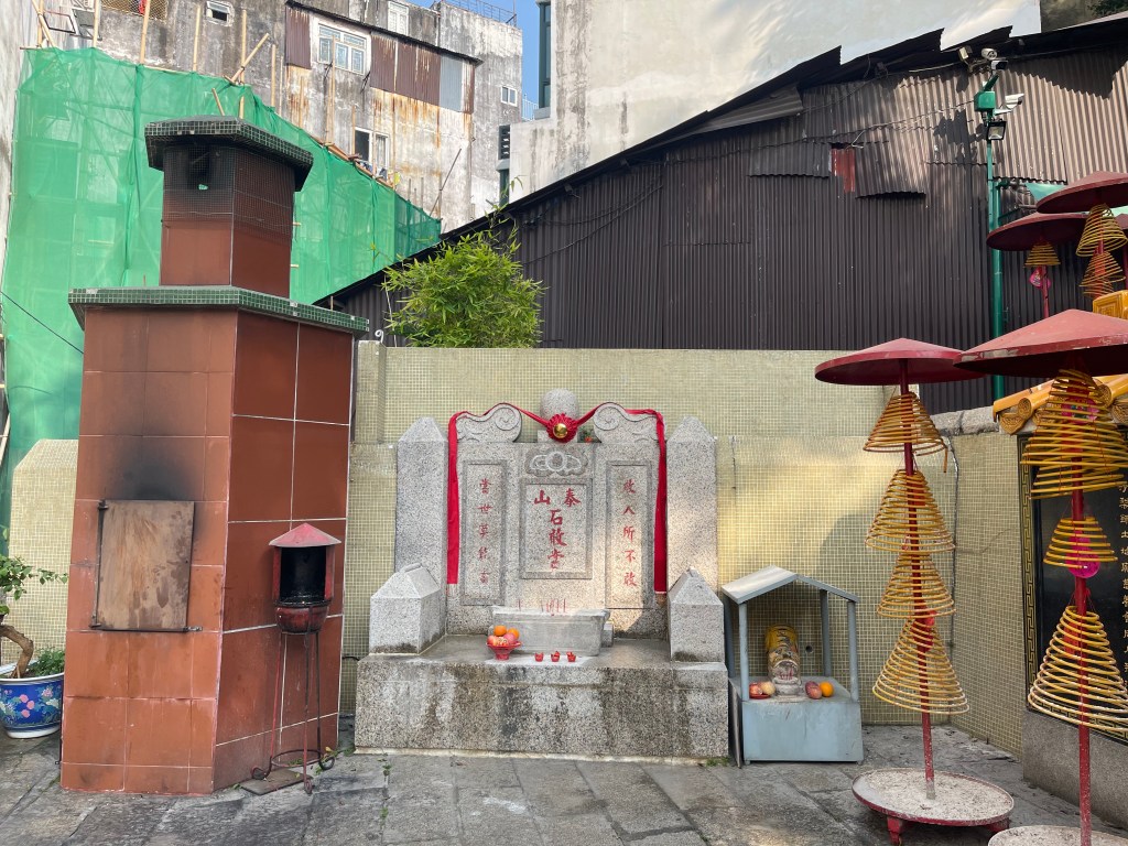 沙梨頭土地廟在石牆街與麻子街交界,背靠白鴿巢公園依山而建。現在該土地廟雖在橫街窄巷之內,但舊時其實該處是沙梨頭的淺灘,面向內港河口,可眺望青州以至灣仔一帶。只是隨著社會發展,滄海桑田,昔日的灘頭演變成今天的橫街小巷。