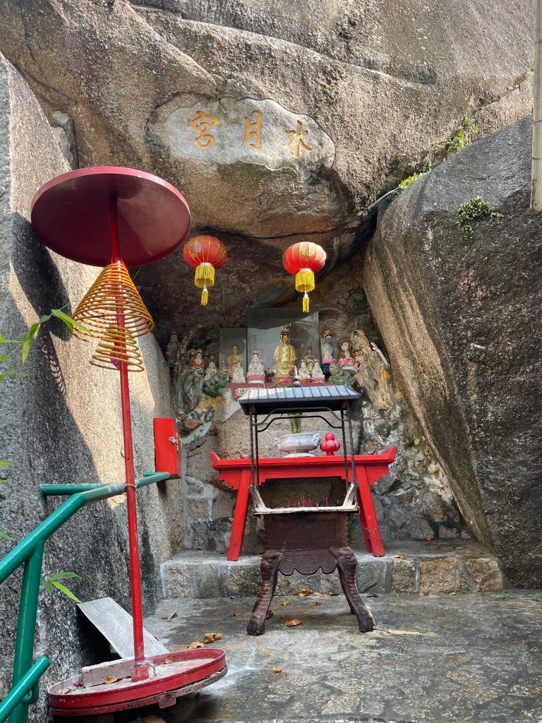 以往觀音巖並非露天,而是有蓋頂的殿堂,在殿堂外豎立有一座名為「水月宮」的水泥牌坊,牌坊建於上世紀三十年代晚期。牌坊及上蓋後來拆除,並把「水月宮」題額重刻在神龕石楣之上,形成今貌。