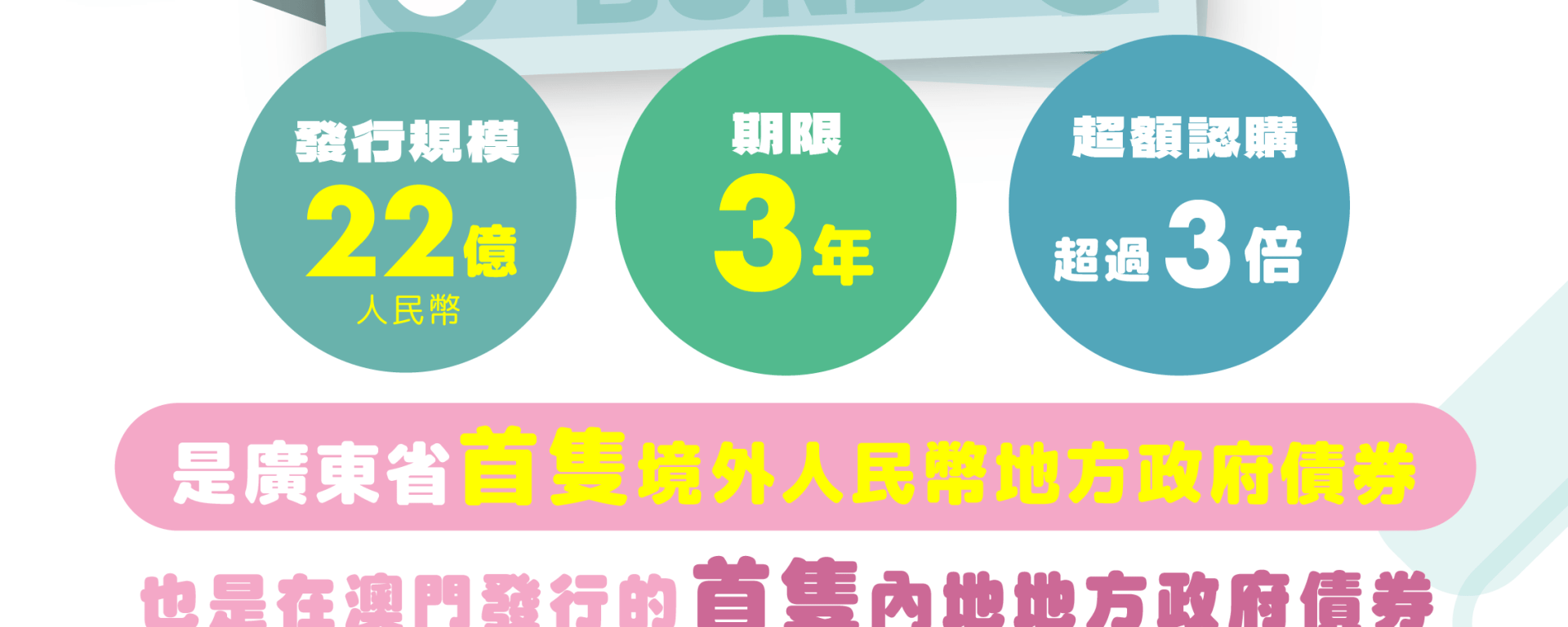 特區政府祝賀廣東省人民政府於10月12日成功在澳門特區發行其首隻離岸人民幣地方政府債券,這也是在澳門發行的首隻內地地方政府債券,謹此感謝國家財政部、廣東省人民政府對澳門債券市場發展的支持。