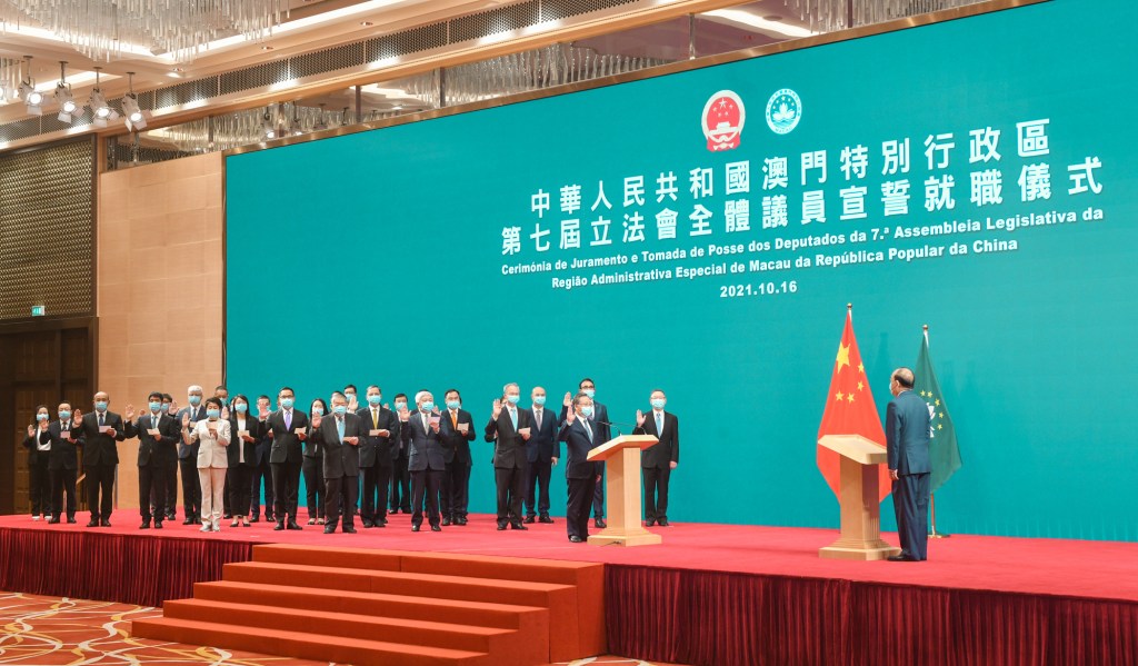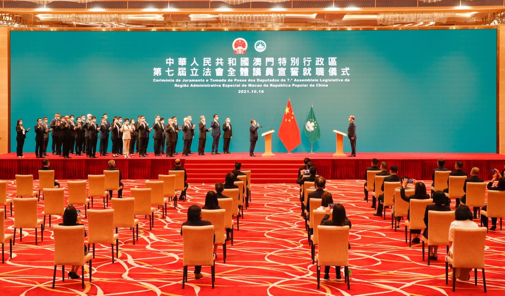 第七屆立法會全體議員宣誓就職儀式日前假中葡平台綜合體舉行,本屆議員全體出席,由行政長官賀一誠監誓。高開賢與崔世昌分別連任主席及副主席,而第一秘書和第二秘書則由何潤生和施家倫當選。