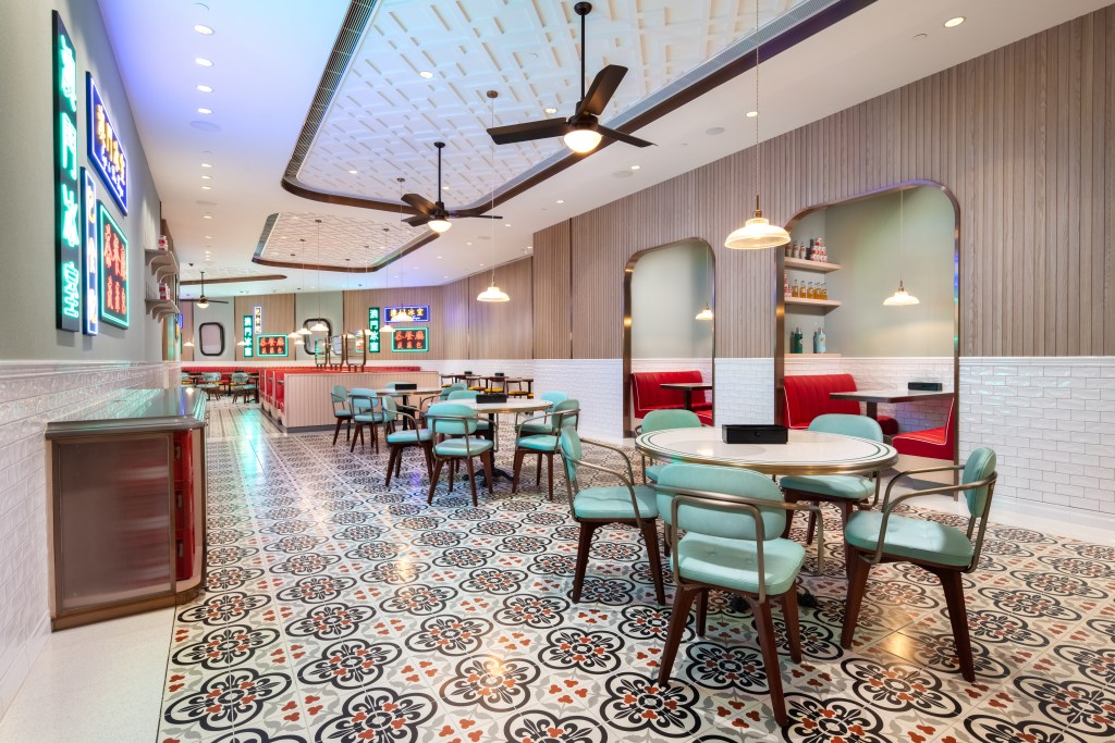 餐廳可容納226人,其室內設計以懷舊霓虹燈牌、天花吊扇、舊式紅色皮革沙發卡座及各種馬賽克地磚等,混搭出了六、七十年代的設計風格,讓客人可穿越時光,一探懷舊冰室的復古情懷。