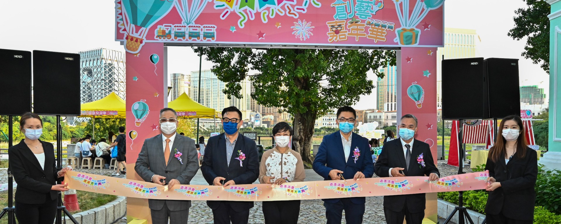 「遊澳消費樂滿FUN」—「創藝嘉年華」主題市集於11月6日於氹仔龍環葡韻啟動。旅遊局局長文綺華、澳門貿易投資促進局行政管理委員會主席劉偉明、文化局文化創意產業促進廳廳長何鴻斌、經濟及科技發展局促進營商處處長劉傑麟以及澳門離島工商業聯合會會長楊景開主持啟動儀式。