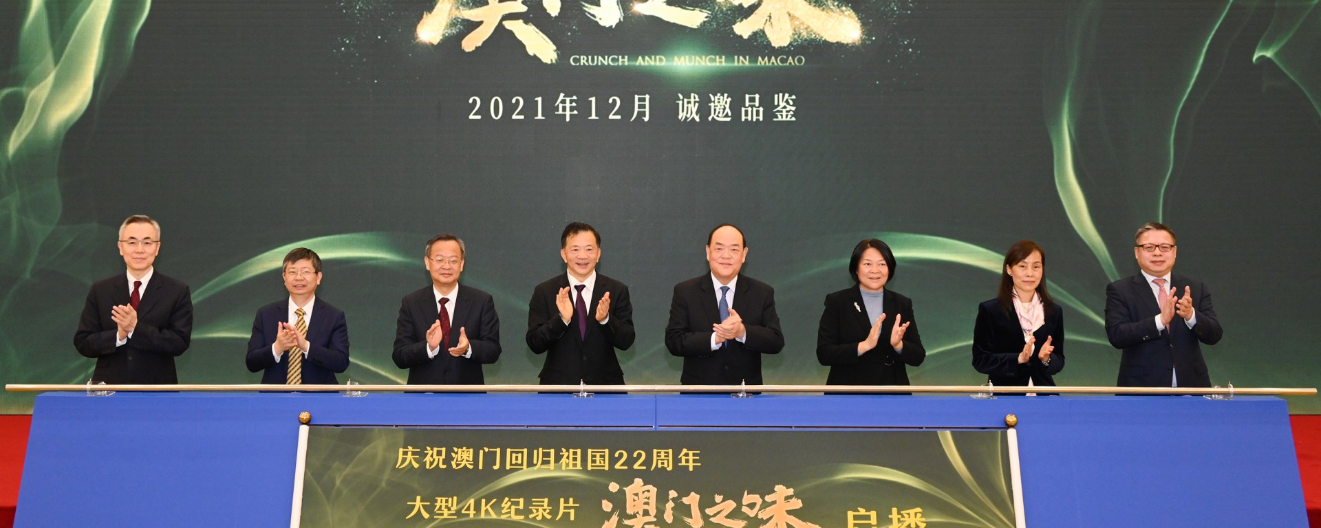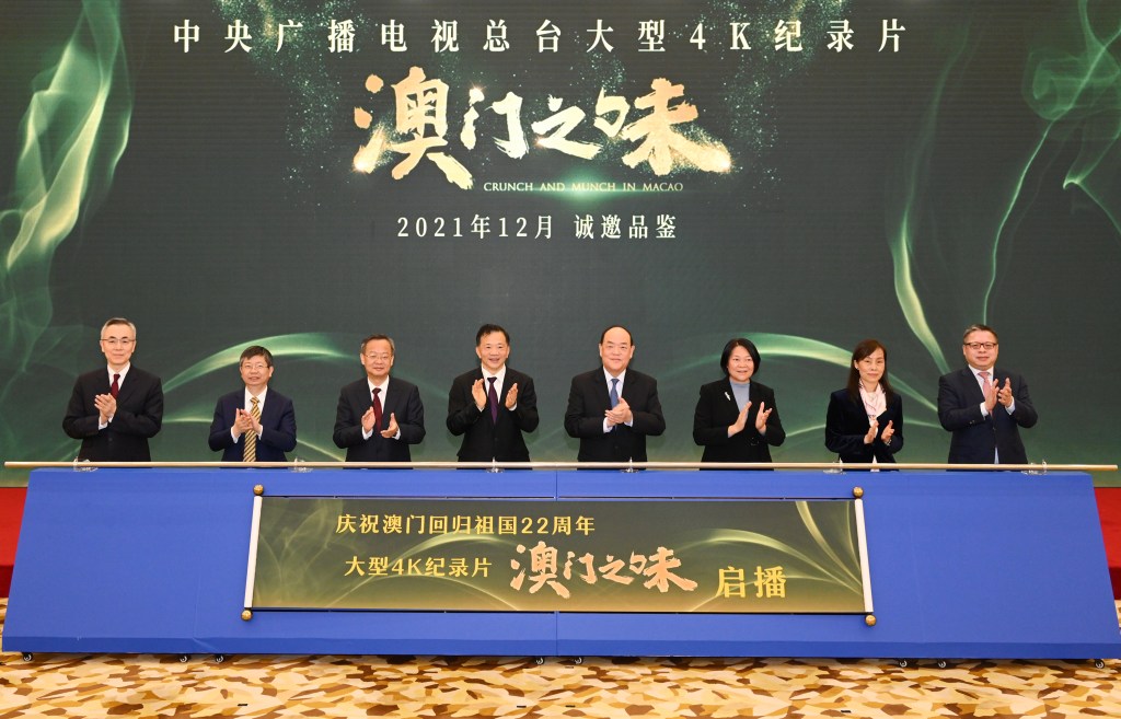 為慶祝澳門回歸祖國22周年,由中央廣播電視總台與澳門特別行政區聯合製作的大型4K紀錄片《澳門之味》,11月24日在廣州舉行啟播儀式。澳門特別行政區行政長官賀一誠,中宣部副部長、中央廣播電視總台台長兼總編輯慎海雄共同為節目開播啟幕。