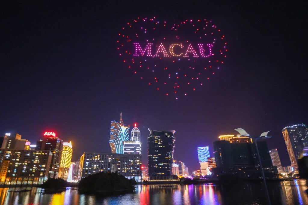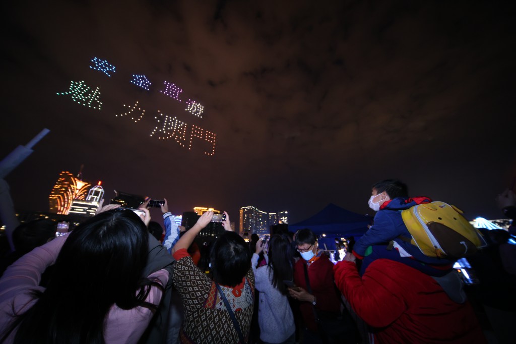 旅遊局首辦的「翱遊澳門無人機表演盛會」於12月4日於南灣湖畔揭開序幕,一眾嘉賓出席於科學館海堤舉行的「2021澳門光影節」暨「翱遊澳門無人機表演盛會」 啟動儀式後前往南灣湖水上活動中心欣賞無人機首演,300台無人機的光影照耀澳門,寓意澳門勃勃生輝。