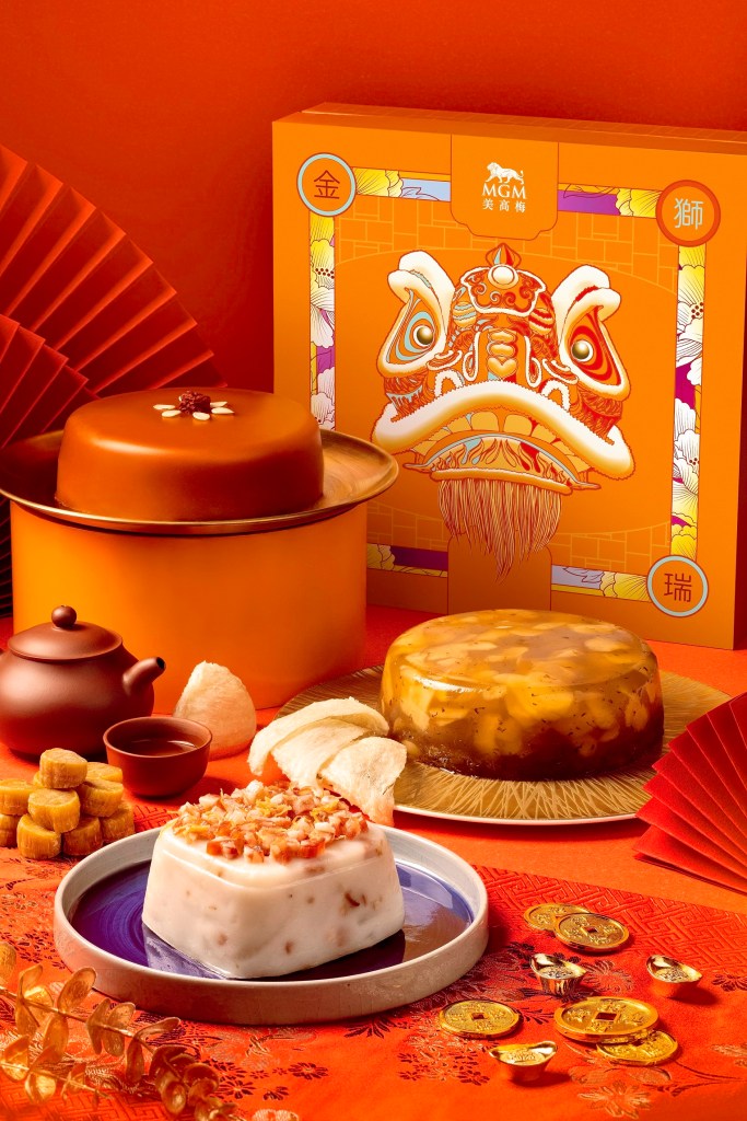 逢年過節,當然不少得傳統賀年糕點,向親朋好友送上新春祝福。美高梅自家製賀年糕點禮盒有經典的「金箔椰汁薑味年糕」及「瑤柱臘味蘿蔔糕」,更有養顏之選「桂花燕窩馬蹄糕」,售價為澳門幣298元起。禮盒禮券由即日起至1月31日於澳門美高梅「甜點」及美獅美高梅「好鍋」、「淳」、「蜀道」、「面對麵」有售。