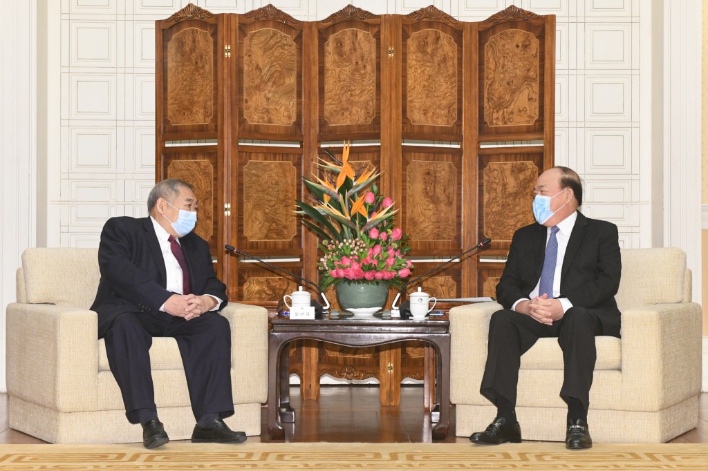 行政長官賀一誠於1月10日在政府總部會見澳門中華總商會會長崔世昌一行,聽取新一屆領導層介紹未來會務工作,並就疫情防控、中小企支援措施,以及橫琴粵澳深度合作區發展等議題交換意見。